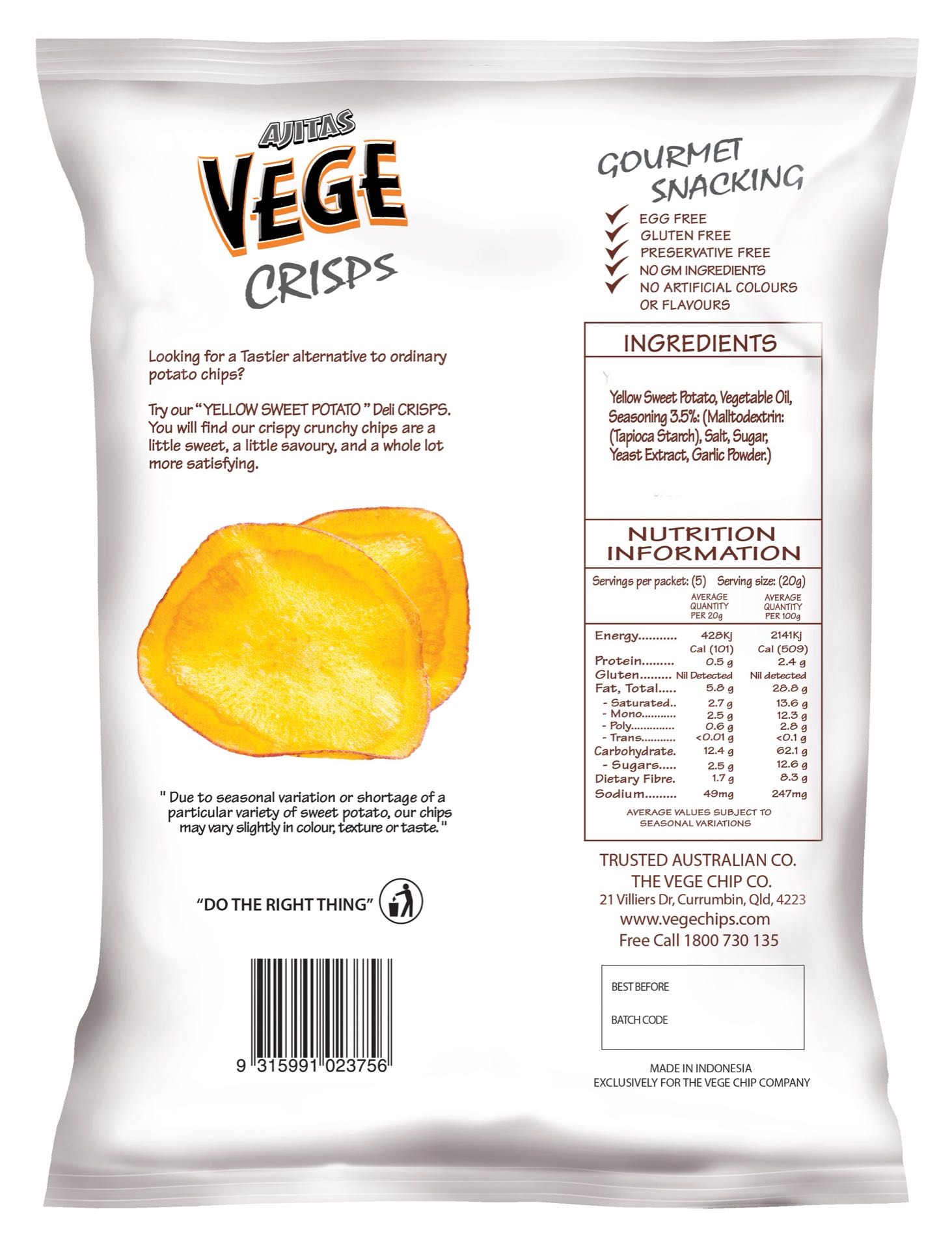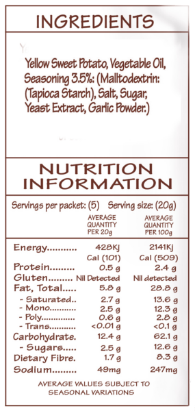 Yellow Sweet Potato is the newest welcome addition to the Deli Crisps family. Our Deli Crisps are slightly sweet, slightly savoury & always delicious.