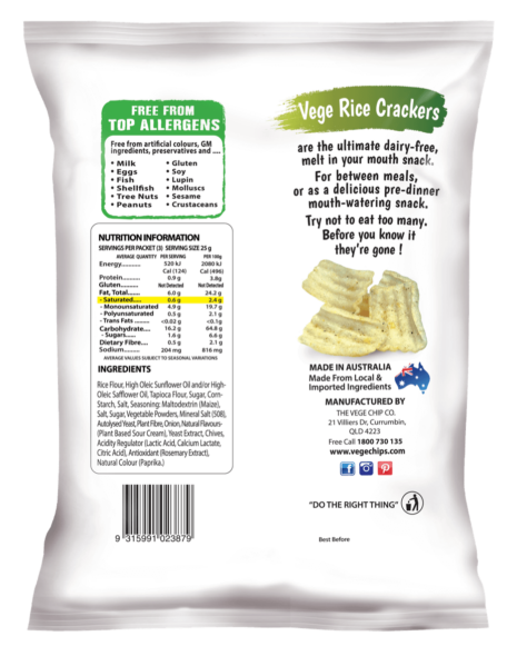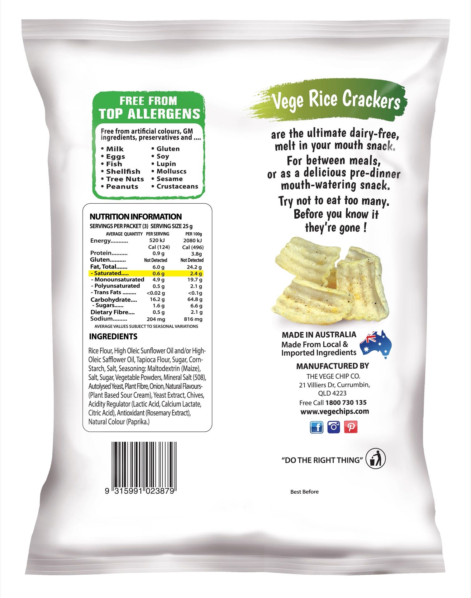 Made from Rice flour & tapioca, our ultimate dairy free melt in your mouth crackers are coated in our new vegan Sour Cream & Chives flavouring, giving these tasty morsels a unique dairy free twist.