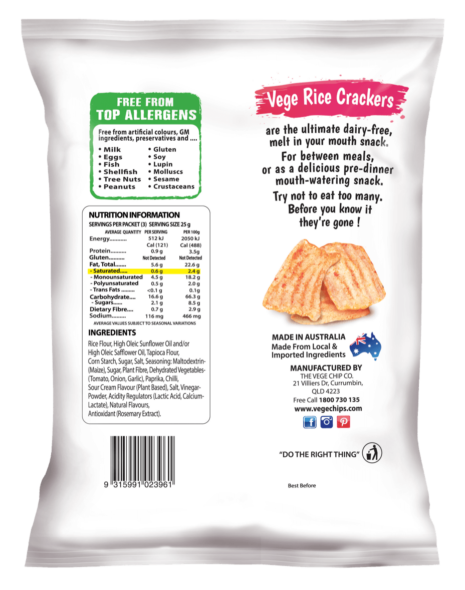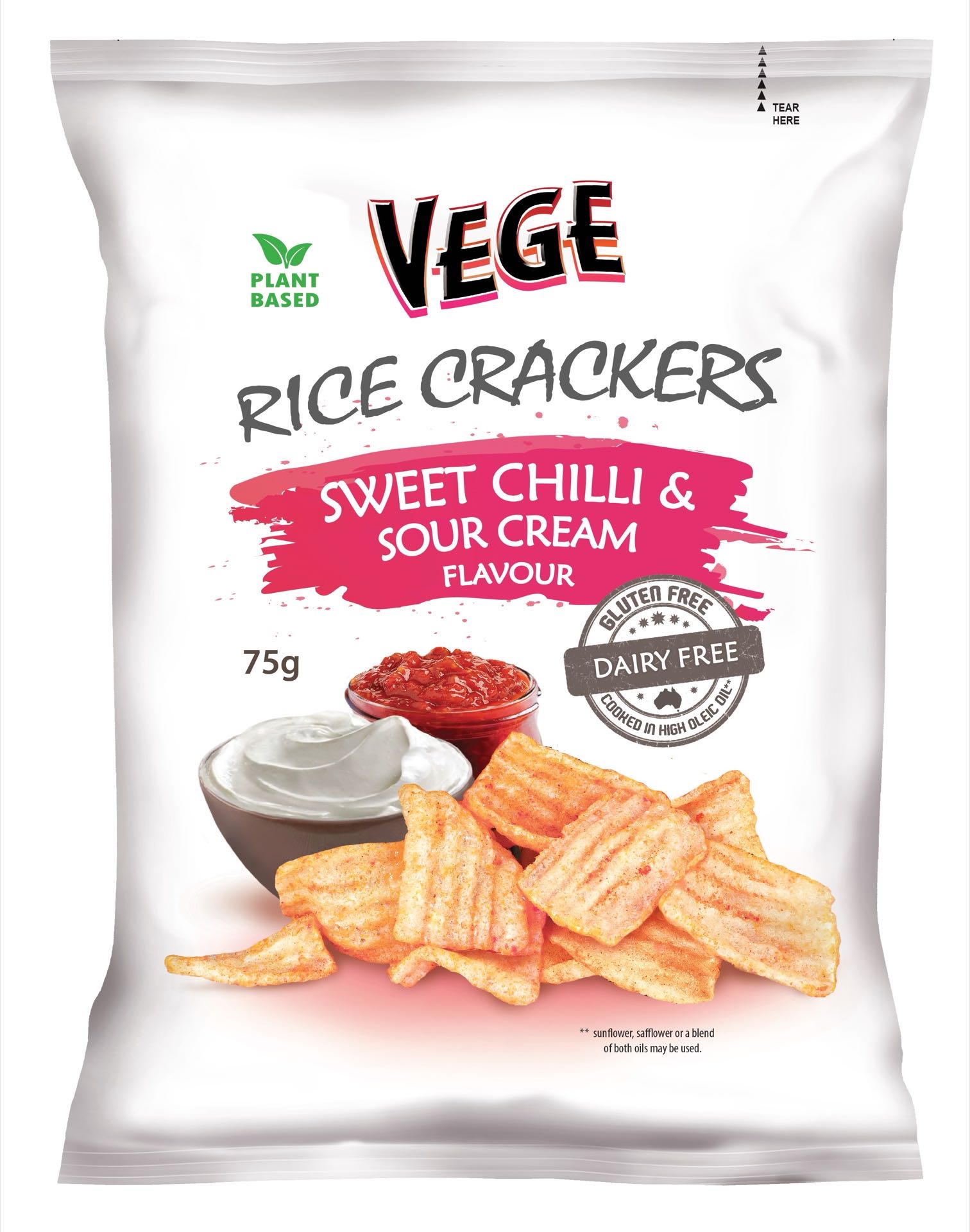 Made from Rice flour & tapioca, our ultimate dairy free melt in your mouth crackers are coated in our new vegan Sweet Chili & Sour Cream flavouring, giving these tasty morsels a unique twist as they actually contain no dairy.