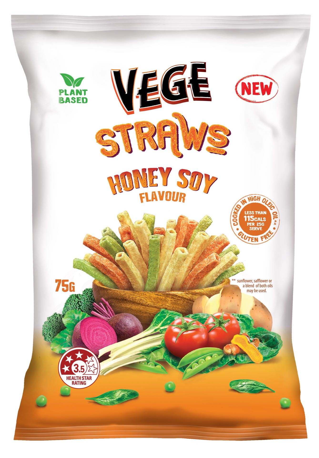 Coated with our mouthwatering Honey Soy seasoning, these plant-based treats are free from added MSG, artificial colours, flavours, and preservatives. Enjoy guilt-free snacking with flavourful Vege Straws!